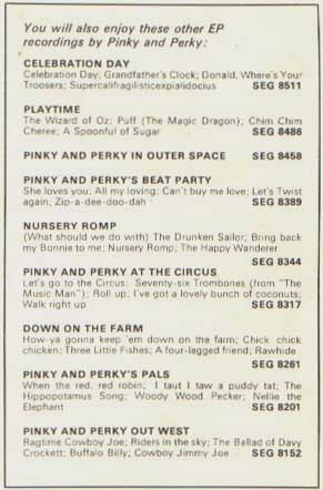 Pinky and Perky's Summer Holiday EP - Back Cover List
