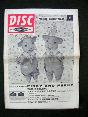 27th Dec 1958 'Disc' magazine No.47 featuring the pigs and their poor relatives the Chipmunks www.PinkyandPerky.com